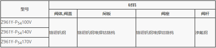 Z961Y-P54100V,Z961Y-P54140V,Z961Y-P54170V 型高溫高壓電動(dòng)電站閘閥零部件材料