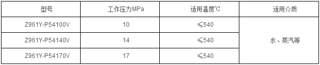 Z961Y-P54100V、Z961Y-P54140V、Z961Y-P54170V 型高溫高壓電動電站閘閥主要性能參數(shù)