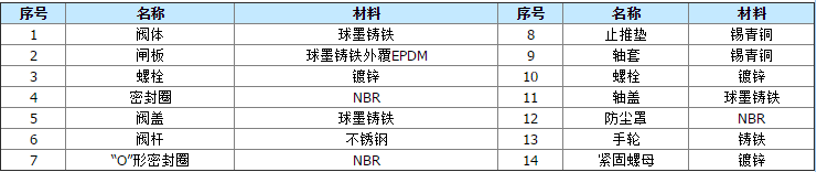 RVCX埋地式彈性座封閘閥主要零部件材料表