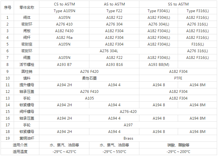 法蘭壓力自緊式閘閥標準材質(zhì)明細表