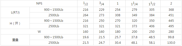 法蘭壓力自緊式閘閥尺寸(mm)和重量(Kg)
