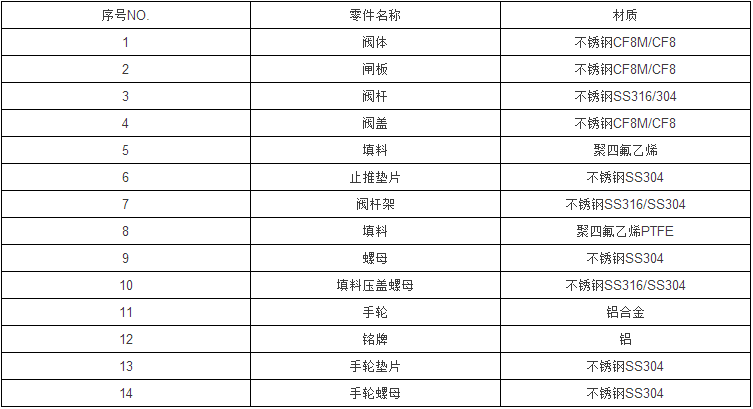不銹鋼內(nèi)螺紋閘閥主要零件材料: