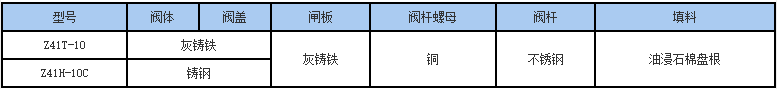 Z41T鑄鐵明桿閘閥主要零件材料: