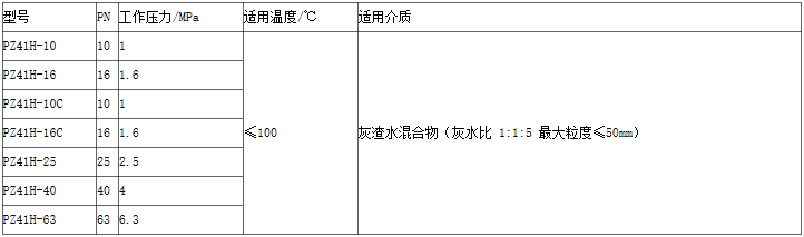 【PZ41H排渣閘閥-主要性能參數(shù)】