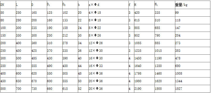PZ41H排渣閘閥主要尺寸 Main dimensions