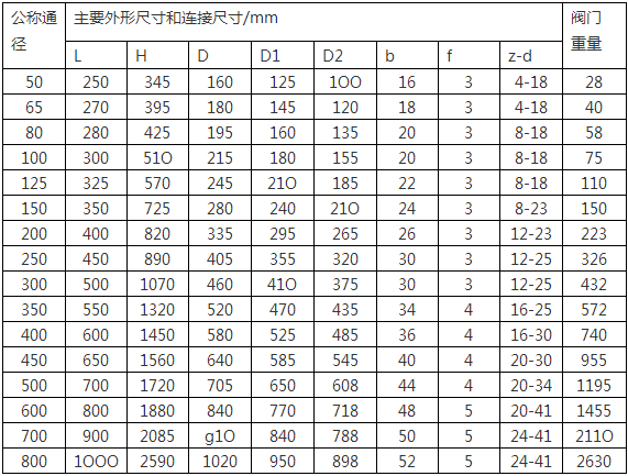 NKZ41H (NKZ44H) 1.0Mpa主要尺寸及重量