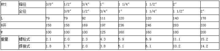 Z61H/Y、HZ61H/Y、HZ11H/Y型鍛鋼內(nèi)螺紋、承插焊閘閥 主要連接尺寸及重量