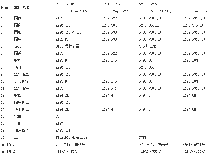 鍛鋼法蘭閘閥標(biāo)準(zhǔn)材質(zhì)細(xì)表