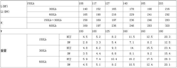 結(jié)構(gòu)長度按ANSI B16.10
