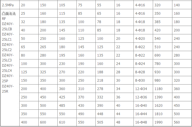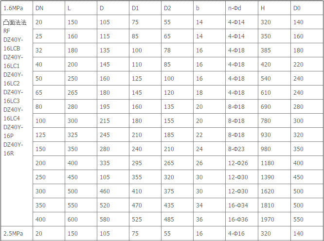 低溫閘閥規(guī)格主要尺寸(PN1.6MPa-2.5 MPa):