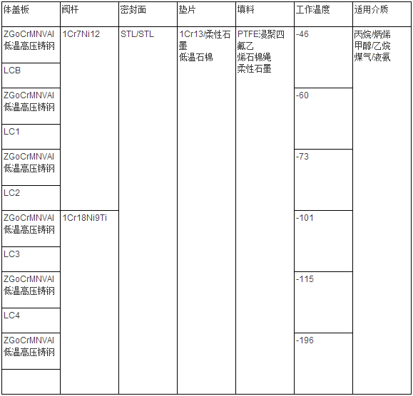 低溫閘閥用途: 適用于甲烷、液態(tài)天然氣、已烯、二氧化碳、液氨、液氧、液氮、液氫等低溫介質(zhì)