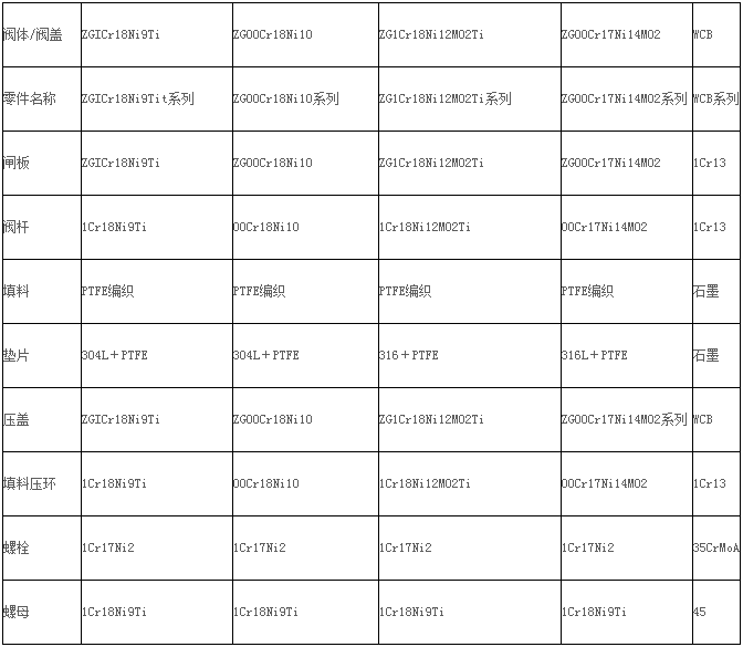 法蘭楔式閘閥主要零件材質(zhì)