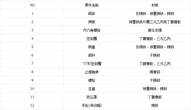 暗桿彈性座封閘閥主要零部件材料