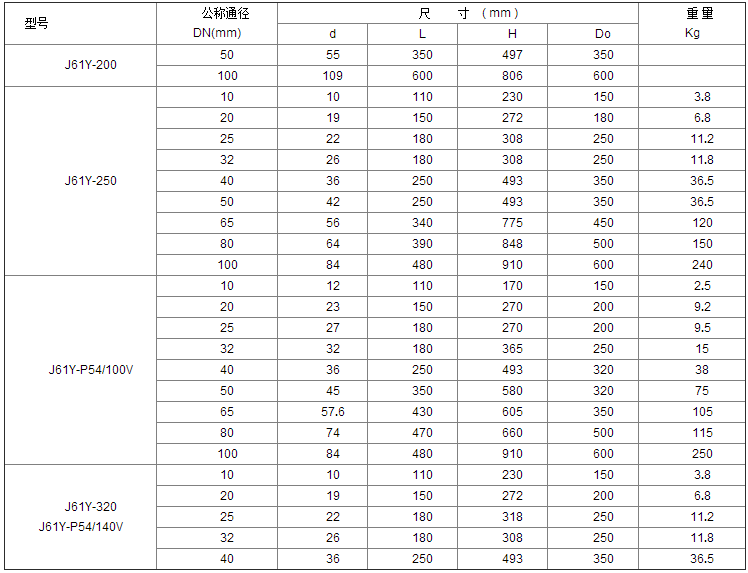 J61Y截止閥尺寸: