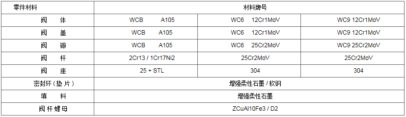 J61Y截止閥主要零件材質(zhì):
