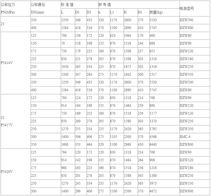 Z961Y電動焊接閘閥主要外形尺寸、連接尺寸及重量: