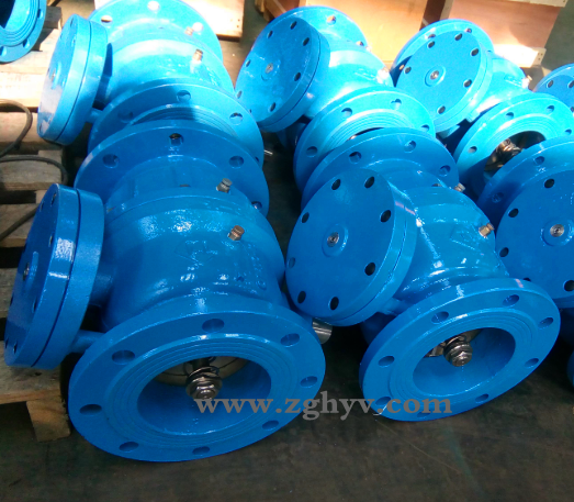正向流動(dòng),進(jìn)口止回和出口止回裝置開(kāi)啟,介質(zhì)從進(jìn)口端流經(jīng)進(jìn)口止回閥瓣口、中間腔、出口止回閥瓣口,流向出口端;此時(shí),進(jìn)口壓力P1>中間腔的壓力P2>出口壓力P3,使排水器關(guān)閉;當(dāng)管道中的流速V=2米/秒時(shí),流經(jīng)該閥的壓力損失h約為2-3米水柱。